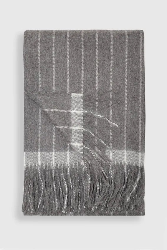 Cascade Throw Charcoal with Ivory Stripes & Border - Sale